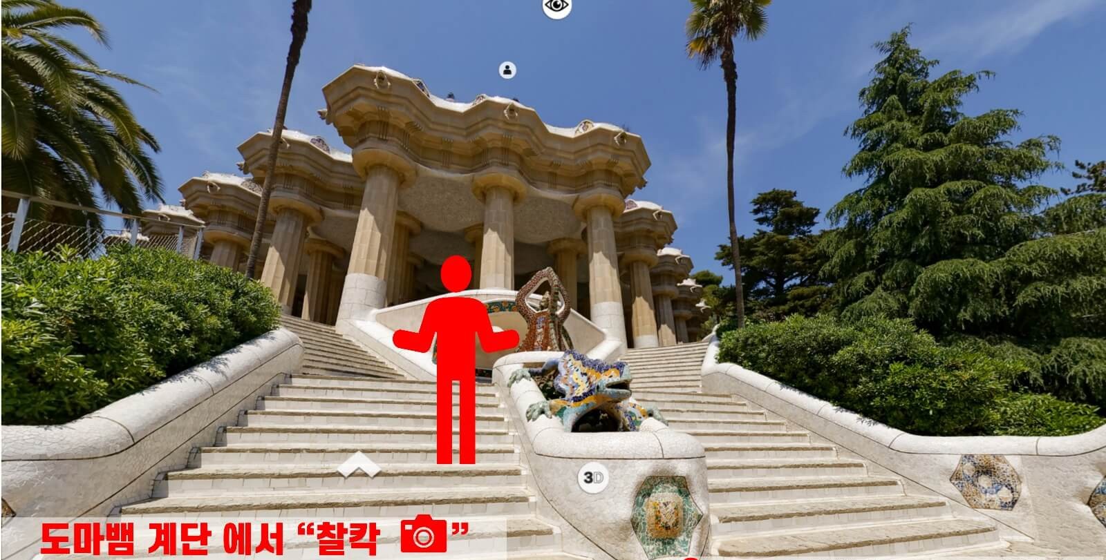 가우디의 집 앞 보다는 오른 쪽 계단으로 올라가서 가우디의 집을 배경으로 사진을 찍어보세요. 사진 포인트 위치보기!