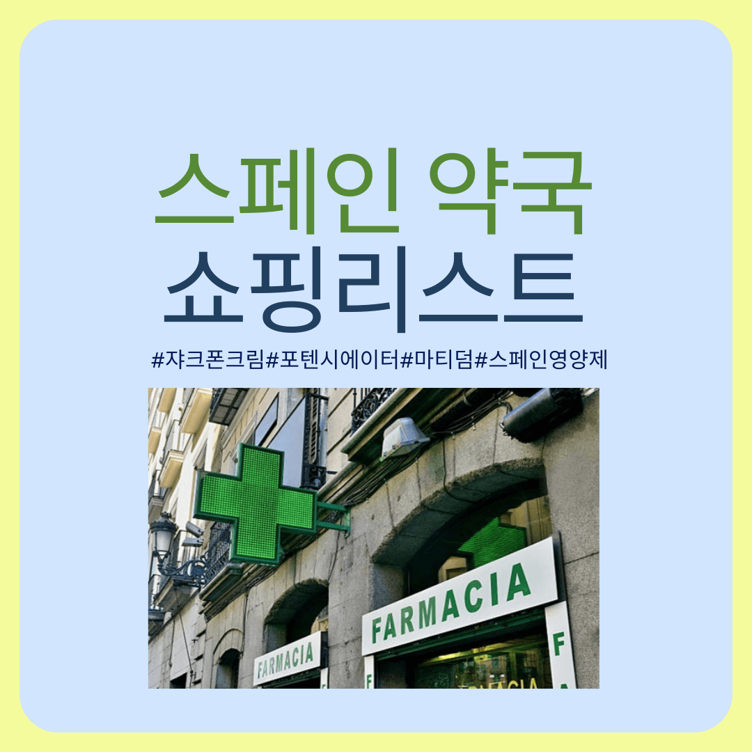 특히 한국 분들 사이에서 입소문 난 쟈크폰크림, 마티덤앰플, 포덴시에이터는 물론, 놓치지 말아야 할 스페인약추천 아이템들과 꼭 사 와야 할 스페인영양제까지, 여러분의 스페인약국 쇼핑리스트를 풍성하게 채워 드릴 핵심 정보를 아낌없이 공유합니다.