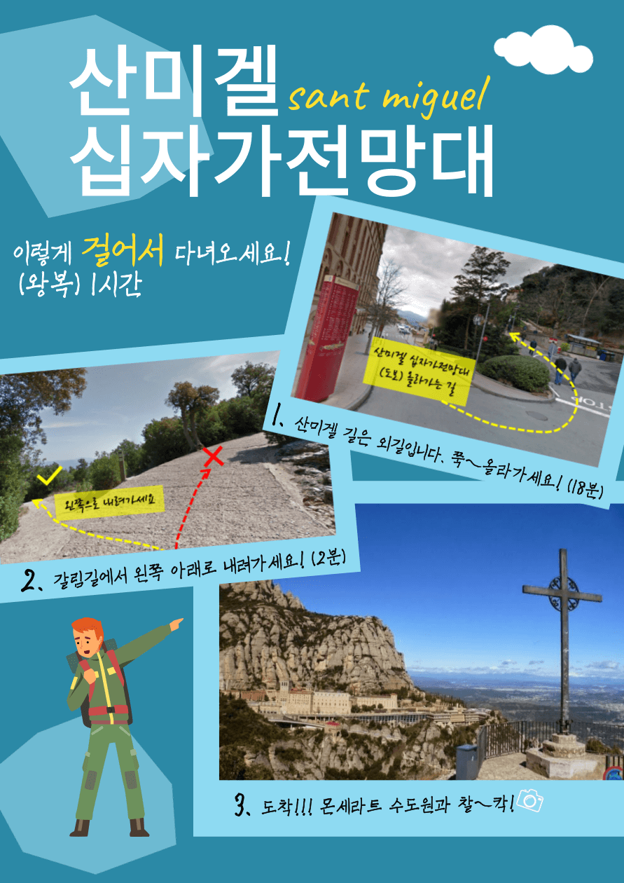 - 난이도: 상 (왕복 약 3시간 30분 소요, 산 조안 푸니쿨라 이용 시 단축 가능)