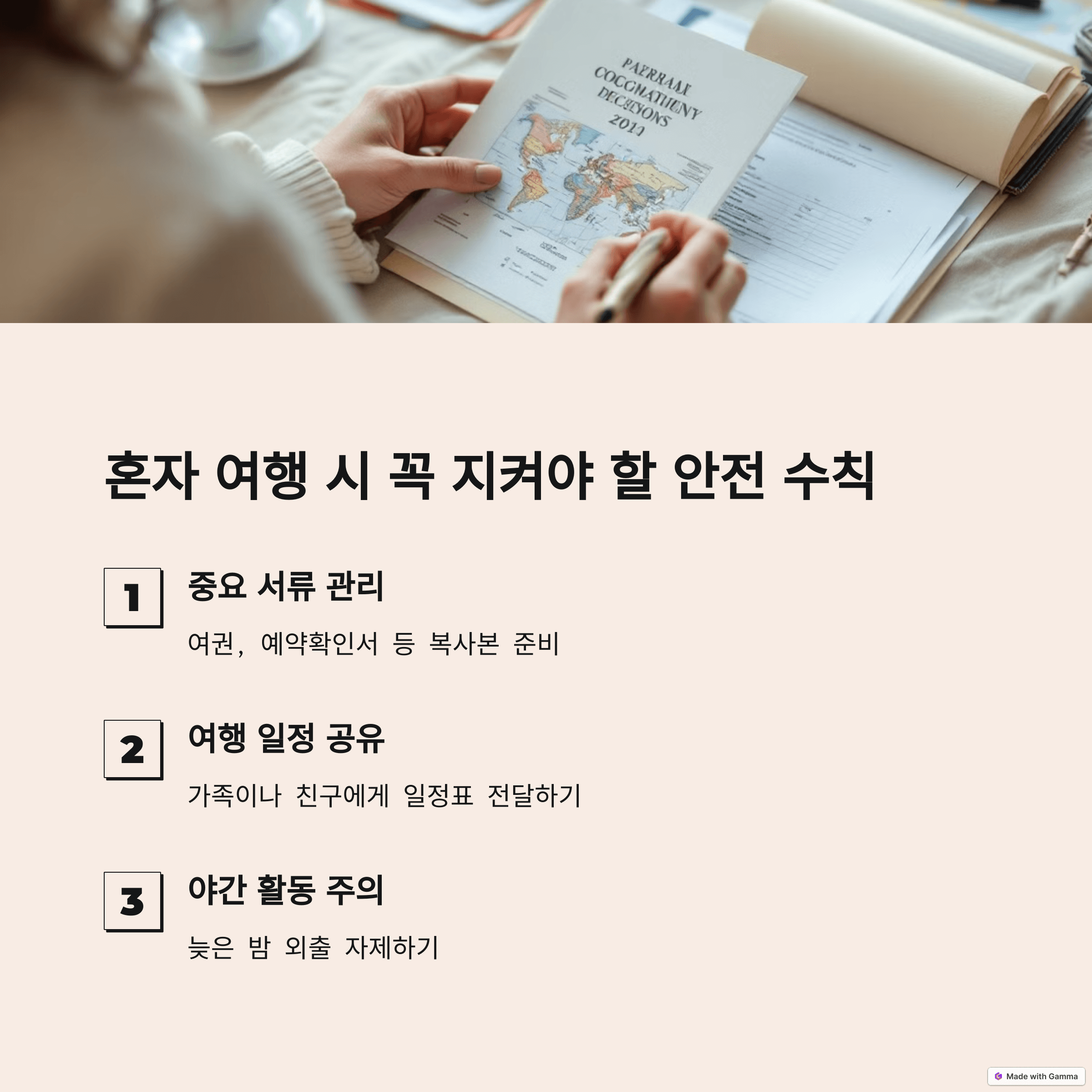 - 5. 혼자 여행 시 지켜야 할 필수 안전 수칙