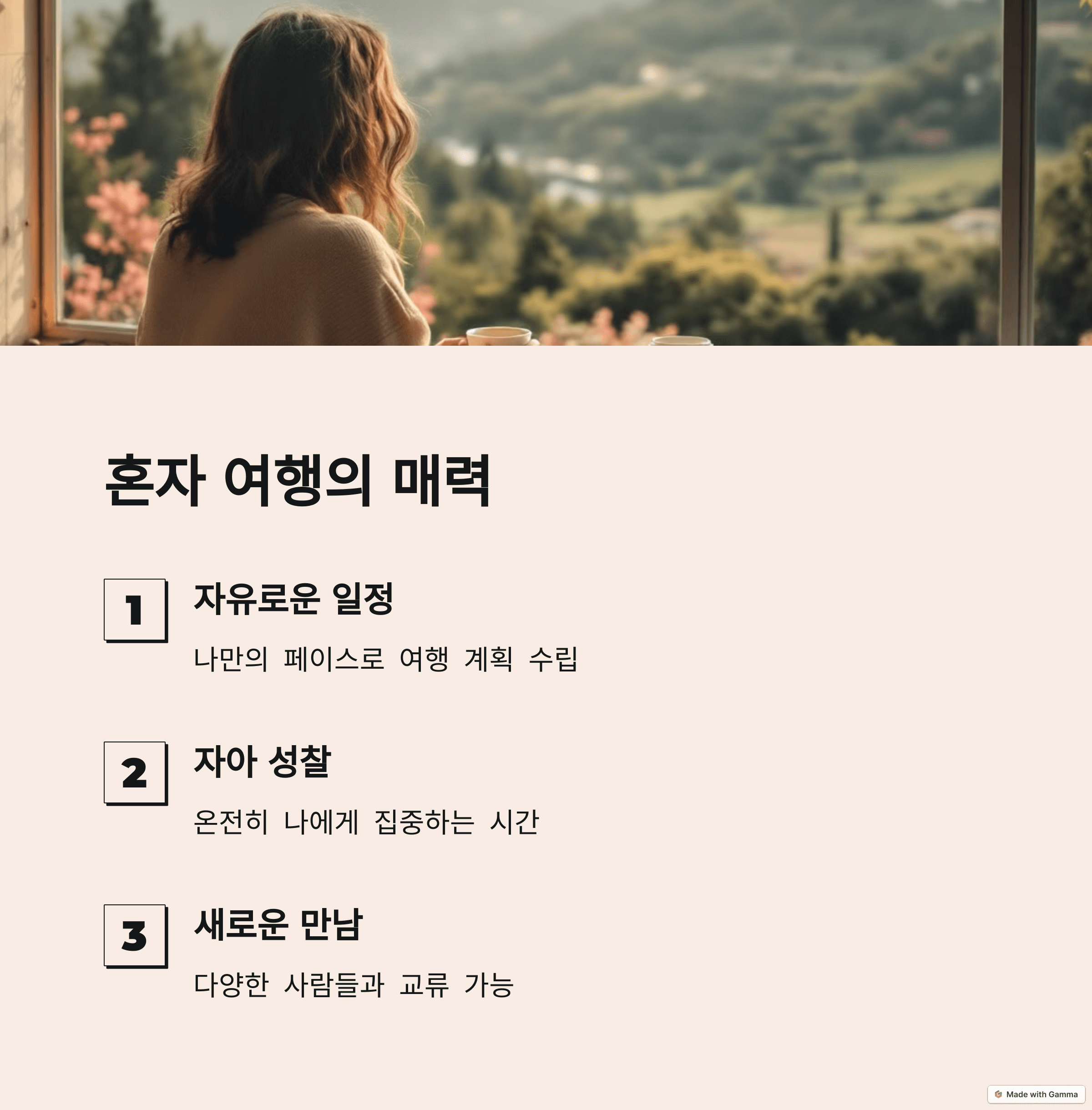 - 1. 혼자 여행의 매력: 왜 떠나야 할까요?