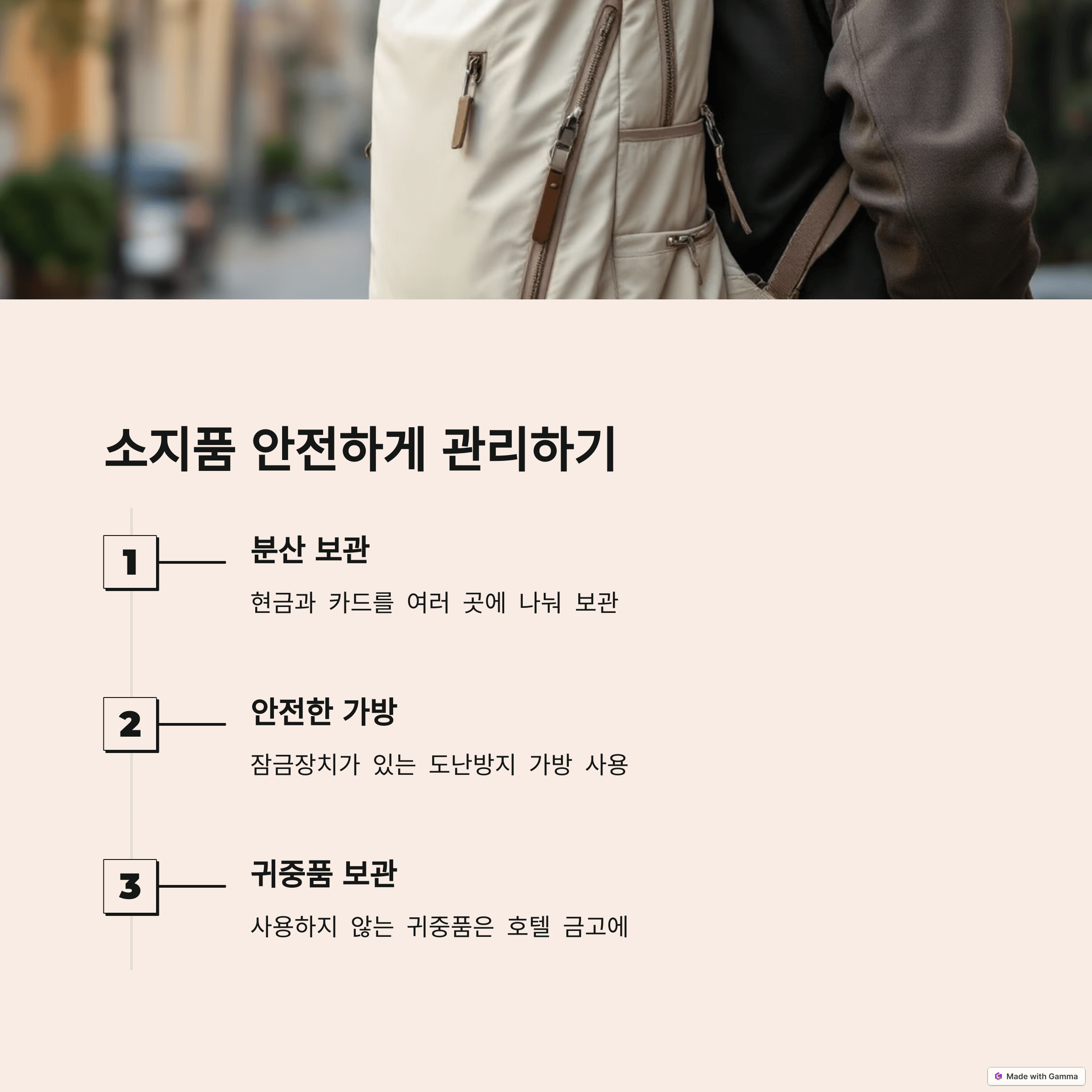 - 현금과 카드 분산 보관: 모든 돈을 한곳에 보관하지 말고 나누어 보관하세요. 중요한 금액은 호텔 금고에 보관하는 것이 좋습니다.