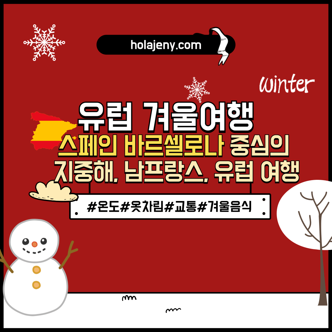 연말 유럽 겨울 여행을 계획 중이신가요? 매년 이맘때 서유럽의 삭막하고 우중충한 겨울 날씨 때문에 망설이셨다면, 정답은 바로 지중해의 축복을 받은 스페인 겨울여행입니다. 특히 제가 살고 있는 바르셀로나의 겨울 날씨는 영하로 내려가지 않는 온화함으로 유명하죠. 한국 직항으로 쉽게 올 수 있는 바르셀로나(Barcelona)에서 따뜻하고 활기찬 유럽의 겨울을 경험해 보세요! 두꺼운 패딩 대신 멋스러운 코트 하나면 충분한 겨울 스페인 여행의 모든 것을 지금 바로 알려드릴게요.